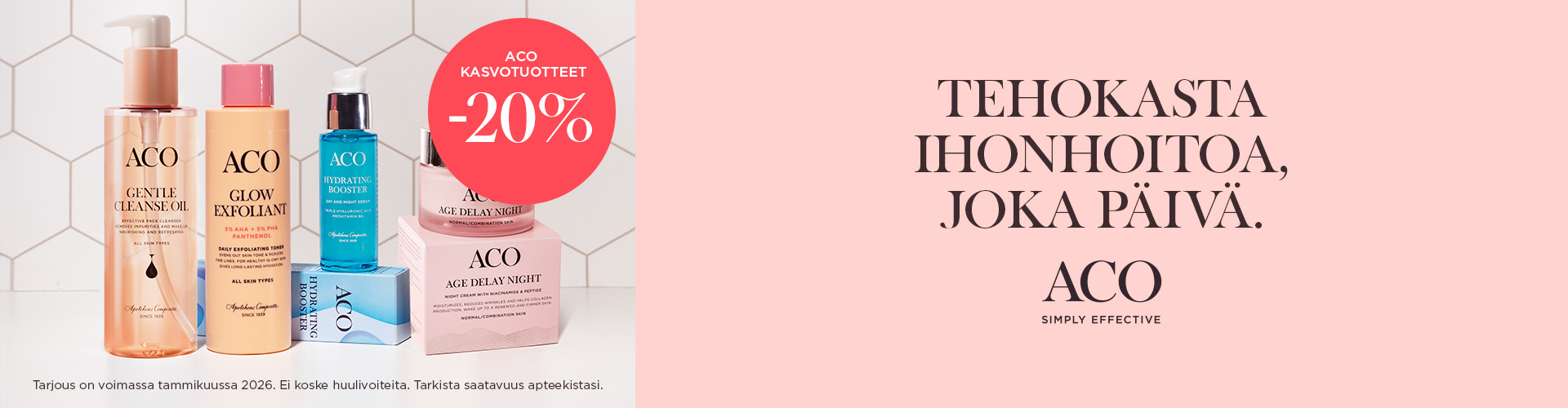 KAIKKI ACO FACE -KASVOTUOTTEET TAMMIKUUSSA -20 %.