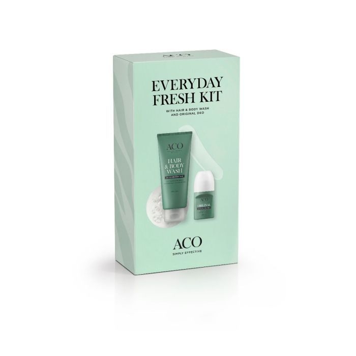 ACO For Men Everyday Fresh Kit lahjapakkaus 200 ml+50 ml sisältää Men Hair & Body Wash 200 ml suihkugeelin sekä Men Original Deo 50 ml roll-on antiperspirantin.