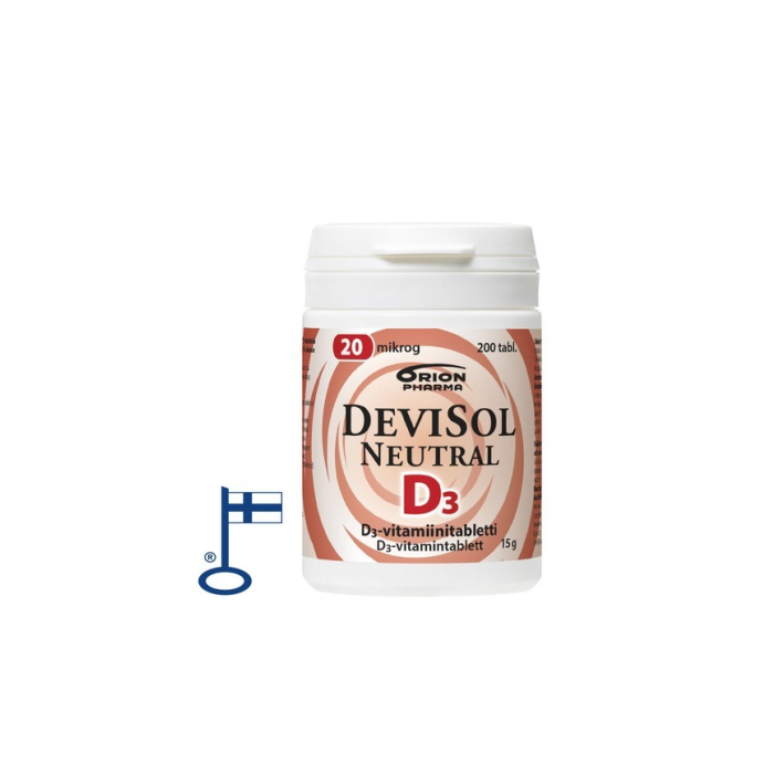 Sväljbar D-vitamintablett. Den mycket lilla tabletten är osötad, fri från aromämnen och lätt att svälja. DeviSol Neutral innehåller vitamin D3 som absorberas väl.