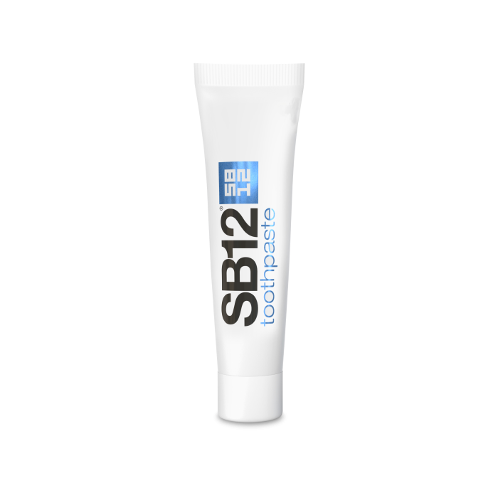 Ksylitolia ja fluoria sisältävä SB12-hammastahna patentoidulla koostumuksella, ehkäisee sekä pahanhajuista hengitystä että hampaiden reikiintymistä. Vahva raikkaan mintun maku.
