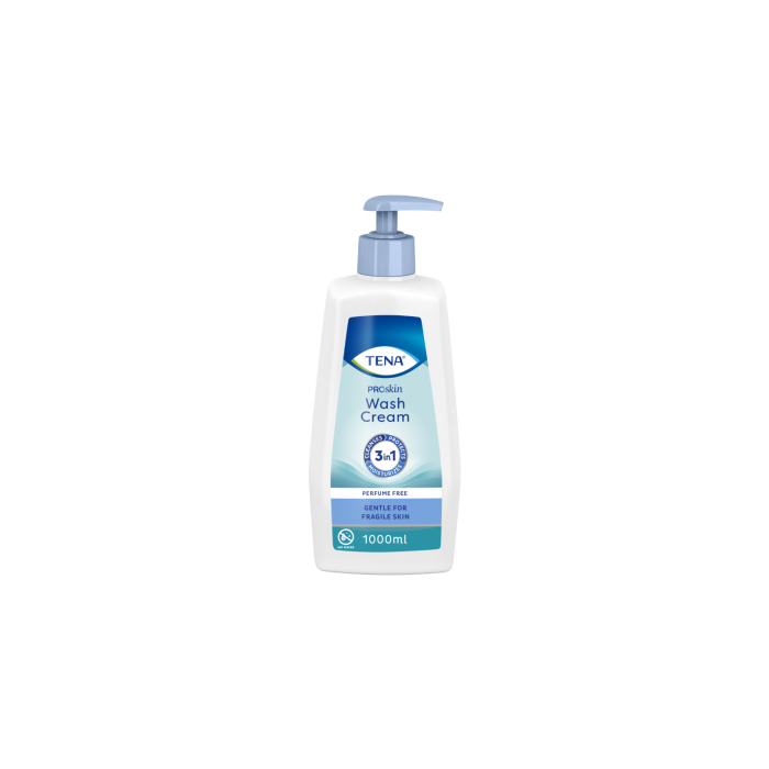 Tämä hellävarainen vaihtoehto vedelle ja saippualle puhdistaa, suojaa ja kosteuttaa herkkää ihoa. Kätevä koostumus, jota ei tarvitse huuhdella vedellä. TENA ProSkin Wash Cream Pesuvoidetta voidaan käyttää inkontinenssituotteita vaihdettaessa tai koko vartalon puhdistamiseen. Tämä hoitava voide on dermatologisesti testattu, hajusteeton sekä auttaa ylläpitämään ihon luonnollisen pH-tasapainon. -Kolmitehoista ihonhoitoa päivittäiseen henkilökohtaisen hygienian hoitoon -Hajusteeton -Ei tarvetta huuhdella -Pitää ihon kosteutettuna -Joutsenmerkitty tuote